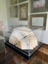 Escultura de papel creada con el arte del plegado de las hojas de un libro antiguo. Cada escultura viene acostada como acordeón al interior de una caja acrílica.
